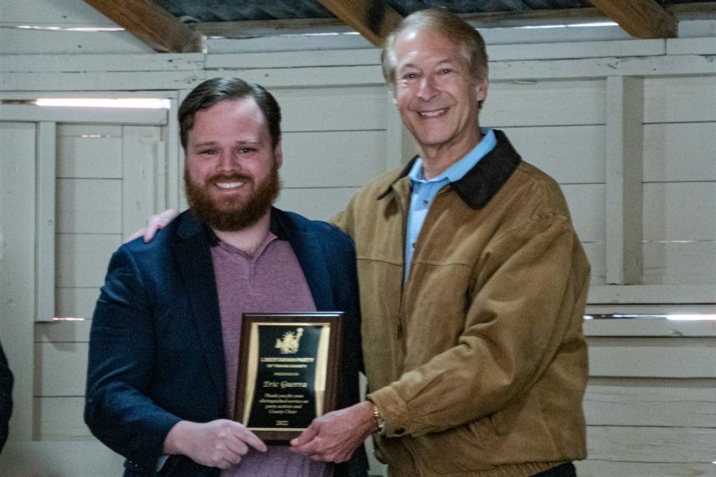 Eric Guerra retired as Chair of the Libertarian Party of Travis County and was presented with a plaque to commemorate his service by new County Chair, Ted, who “was honored to be elected Chair of LPTravis for a two-year term.” About 30 Libertarians attended to conduct party business.